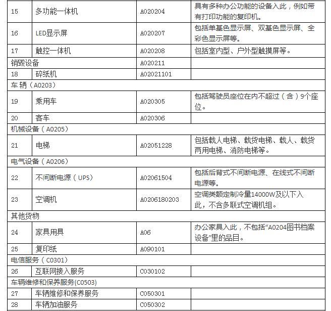 (一)各市(州)、縣(市)統一執行本通知規定的政府集中采購目錄范圍及標準。