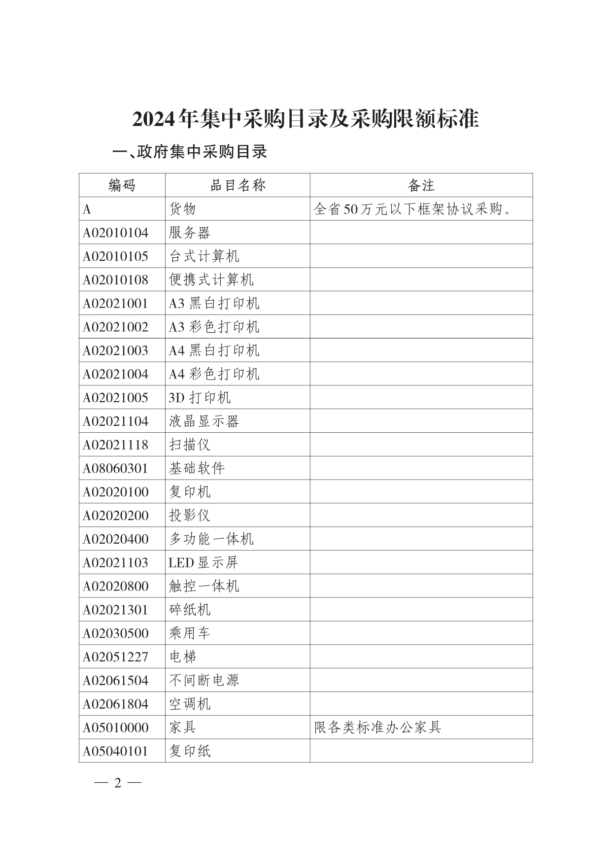 山西省集中采購目錄及采購限額標(biāo)準(zhǔn)(2024年版)