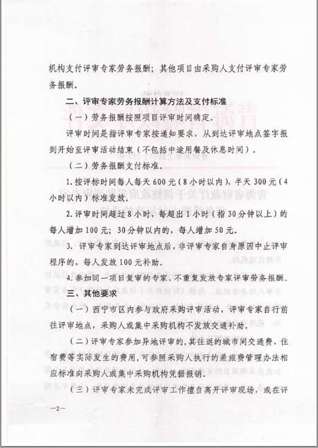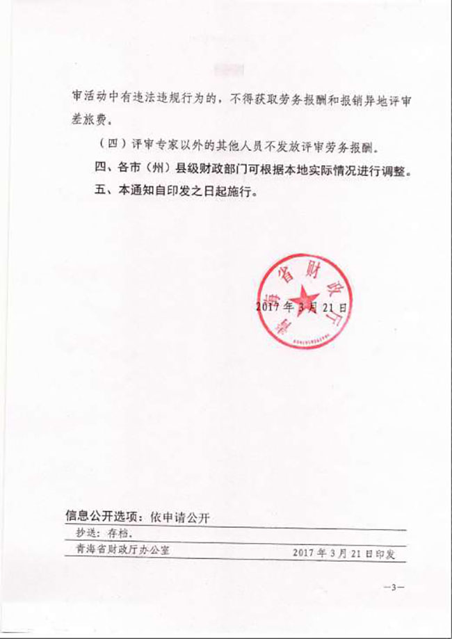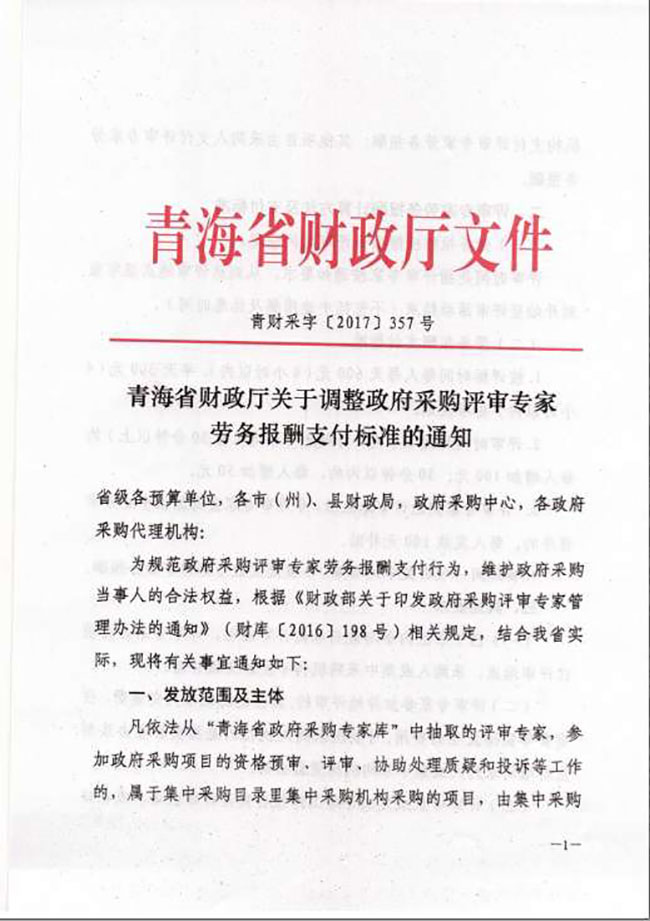 青海省財政廳關于調整政府采購評審專家勞務報酬支付標準的通知(青財采字〔2017〕357號)
